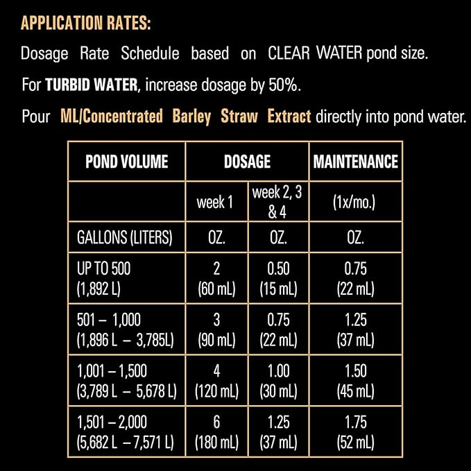 - CONCENTRATED FORMULA: One capful treatment has a stronger impact than a barley straw bale when it comes to keeping your water clear; There is no residue to mess up a waterfall feature and is especially helpful where bottom drains are present