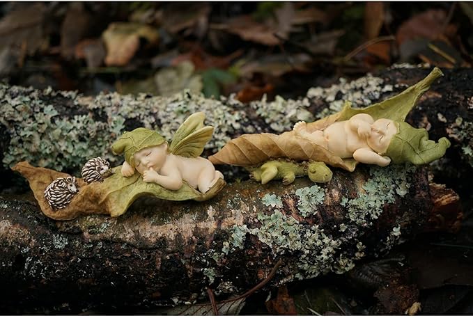 Top Collection Miniature Fairy Garden and Terrarium Statue, Sleeping Fairy Baby with Hedgehogs