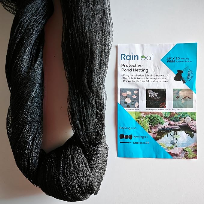 Rainleaf Pond Netting, 7' x 10' Pond Net Cover, Koi Pond Netting for Leaves, Heavy Duty Koi Pond Net Protecting Koi Fish from Herons, Stakes Included