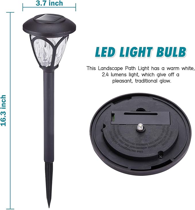 - BRIGHT WHITE LIGHT: These Solar Light Outdoor give off ample light to the paths and walkways for enhanced visibility. And the warm white light helps to create a romantic and cozy mood which is good for both daily and holiday decorations.