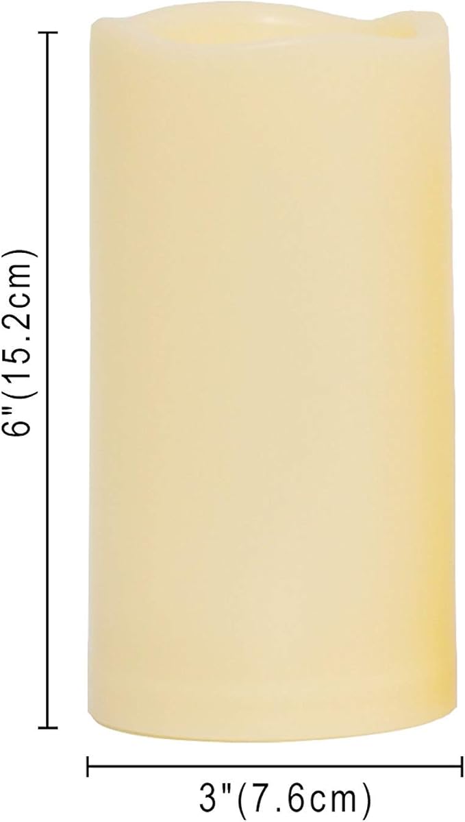 2 Waterproof Outdoor Battery Operated Flameless LED Pillar Candles with Timer Flickering Plastic Resin Electric Decorative Light for Lantern Patio Garden Home Party Wedding Decorations 3x6 Inch