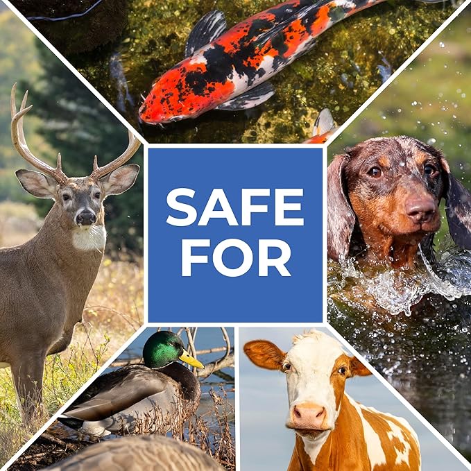 - All Natural: Safe for fish, koi, snails, pets, horses, livestock, birds, wildlife, plants, recreational ponds, and the environment. Liquid formula. For best results, begin application in early spring.