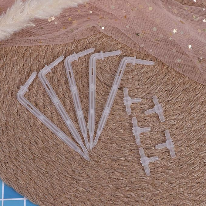 10 Sets White Drip Emitters with 3-Way Connector Curved Arrow Dripper Potted Plants Bend Sprinklers Garden Automatic Irrigation System for 4/7mm Hose Patio Watering Cooling Irrigation Kit