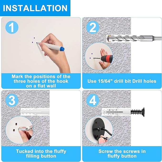 - LOADING WEIGHT --- The hooks can holds up around 50 pounds weight, Ensures stability and strength, suitable for interior and exterior use.