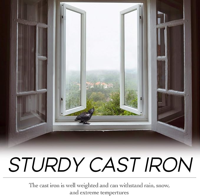 - Sturdy Metal Garden Art – Unlike the real thing, this crow statue will not fly away! The cast iron is well weighted to keep these garden statues where you place them. Rain, snow, and even moderate wind will not disturb these outdoor statues.
