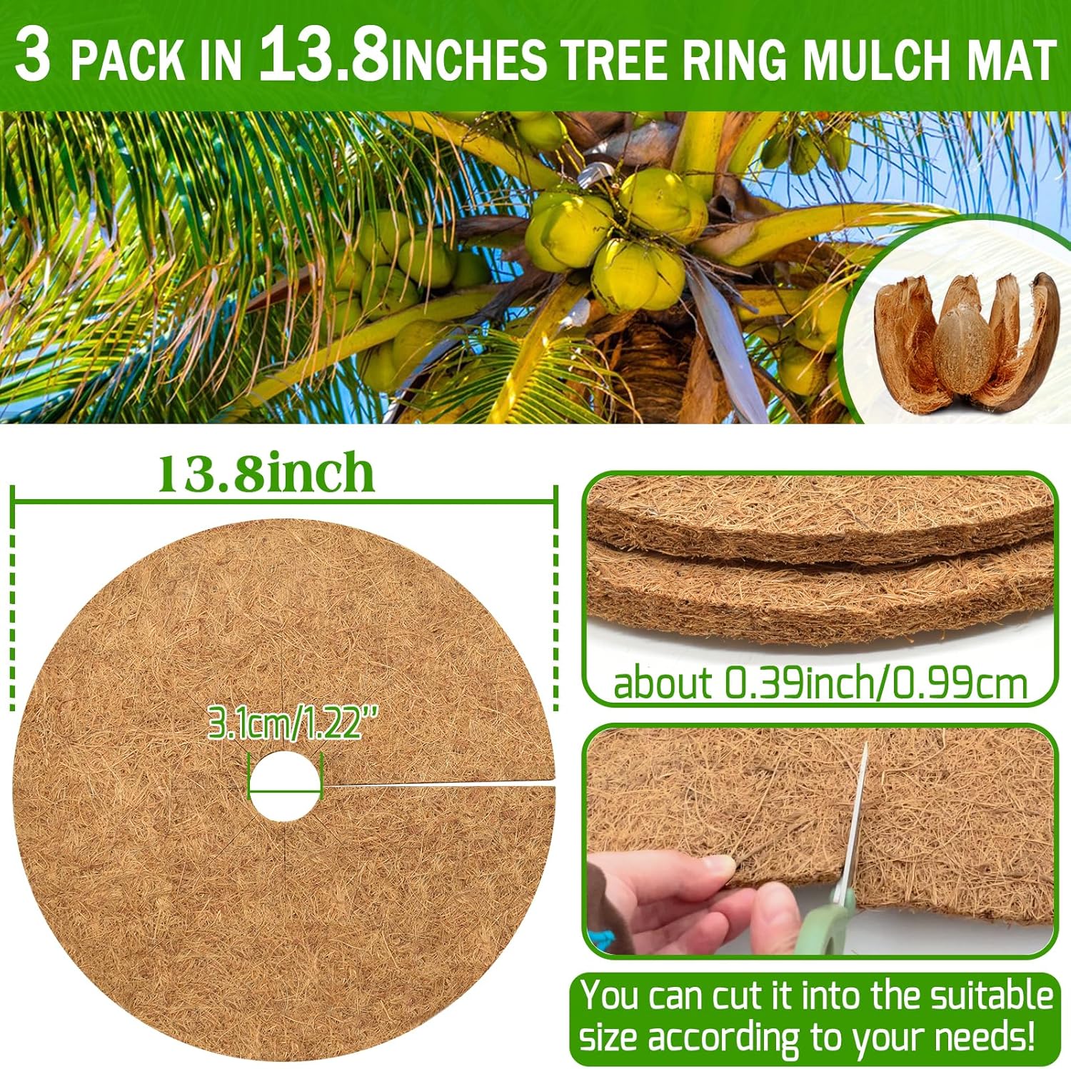 - Quantity: 3 pieces of coconut tree cover ring tree mats per pack, the quality and extra thick tree mats are perfect for you to put them in pots / pots, Easy to use tree rings are great for plants and trees in the indoors as well as outdoors to grow a perfect garden in your lawn.