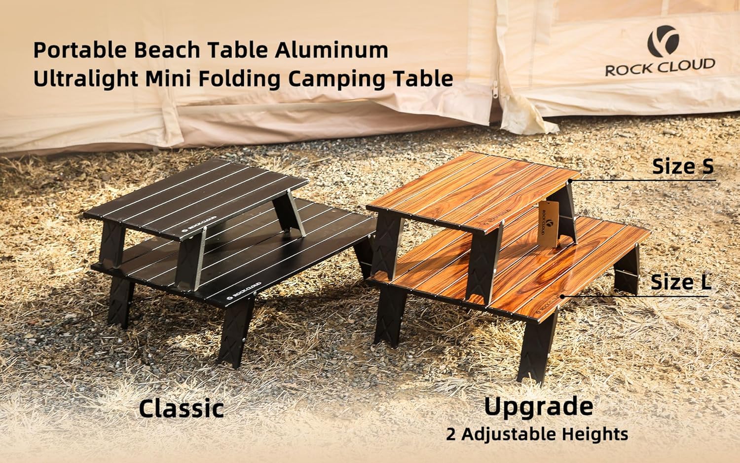 ROCK CLOUD Ultralight Folding Beach Table Adjust Height Aluminum Portable Mini Camping Table