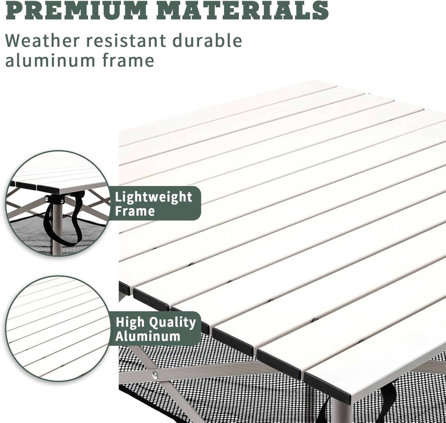 - Extremely Lightweight & Convenient: The size of lightweight & sturdy aluminum folding camping table is 27.5"x27.5"x27" and weights only 6.8 LBS (3.1KG), providing the great convenience for you to travel around. The attached mesh net offers additional spacious storage for you to store your drinks, food, and other stuff.