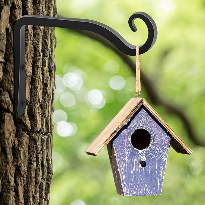 Gtongoko 2 Pack 6 Inch Plant Hangers Outdoor Metal Hanging Plant Bracket Bird Feeder Wall Hooks for Hanging Flower Basket, Wind Chimes, Solar Lanterns, Black