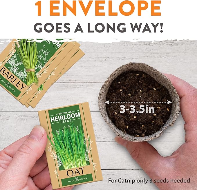 - Premium Oat & Barle100% Non-GMO, Heirloom Catgrass Seeds - Stick to the good stuff from Home Grown, where we grow people food too! We've got it all: from herbs and veg, to flowers and bonsai.y Seeds Mix, Oat Seeds and Alfalfa Seeds - These greens are great for digestion, preventing hairballs and are chockfull of amino acids and fiber, and also keep your cats away from chewing house plants (which may not be safe).