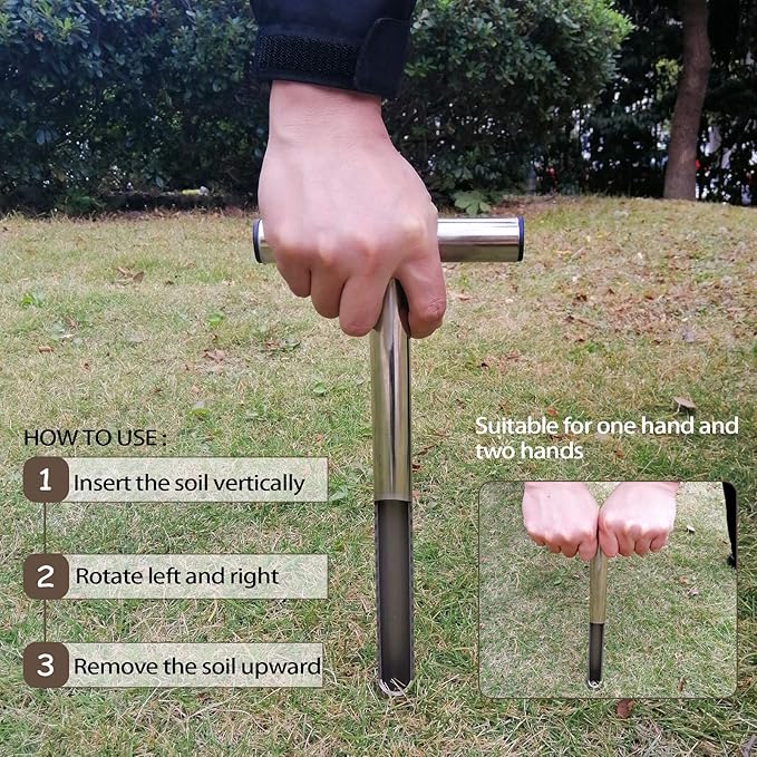 - EASY TO CARRY: Soil Sampler Probe is measured 12 inches long, outer diameter of the probe is 0.98, it is marked at 7.87 intervals to indicate sampling depth, the handle is 10 inches long
