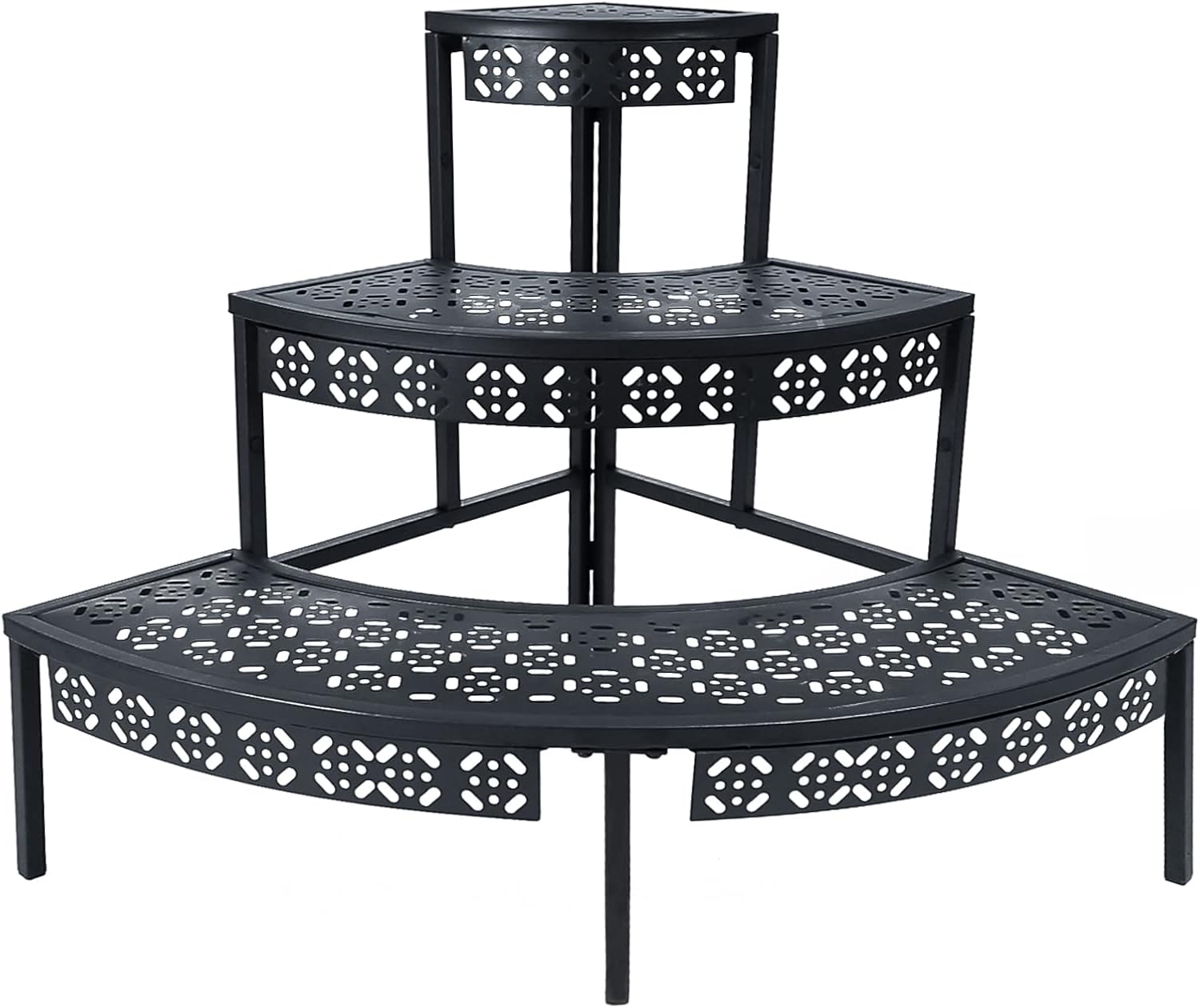aboxoo 3 Tier Plant Stand Flower Pot Rack, Metal Stair-Step Style Corner Shelf Planters, Quarter Round Display Holder for Indoor Outdoor Use(Black, Semicircle)