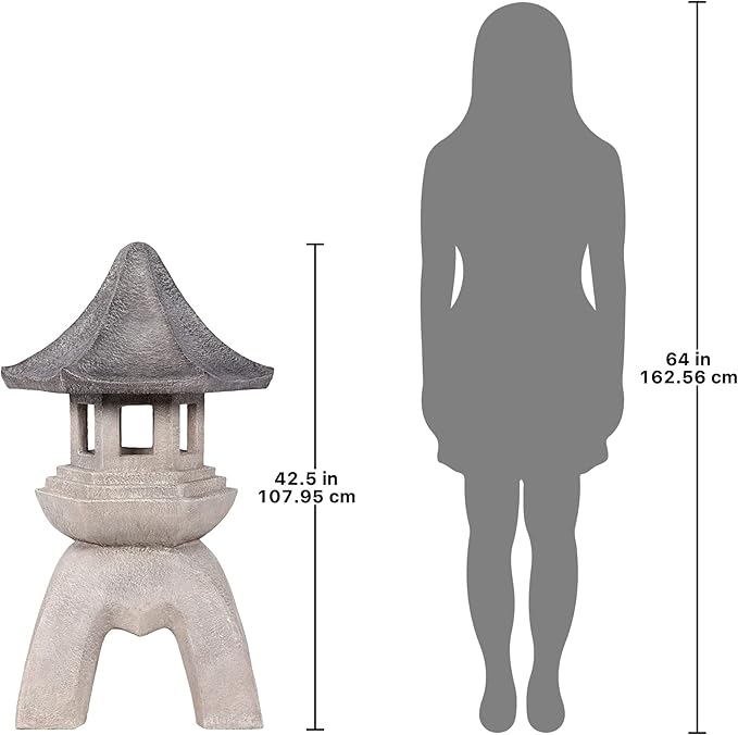 Design Toscano Asian Decor Pagoda Lantern Indoor/Outdoor Statue, Giant, Fiberglass Cast Stone Resin, Two Tone Stone Finish