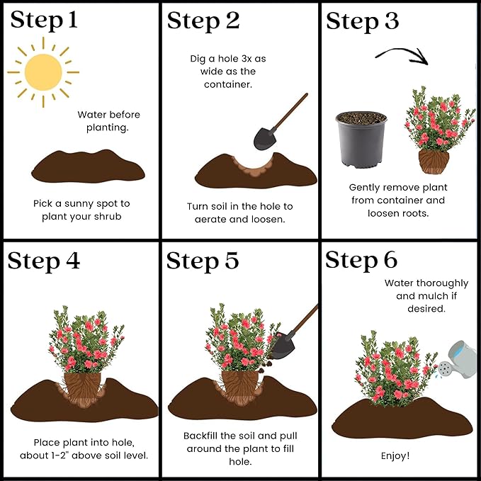 - Product Care Instructions : Turn the soil well and dig a hole twice as wide as it is deep. Mix some organic material with some soil. Put a little bit of this mixture into the hole. Remove the azalea from its container and loosen the root ball lightly with your fingers. Set the plant into your prepared hole, making sure the top of the root ball is slightly above soil level. Make sure the root ball is moist. Pull the soil around the plant, water thoroughly and cover with mulch Turn the soil well and dig a hole twice as wide as it is deep. Mix some organic material with some soil. Put a little bit of this mixture into the hole. Remove the azalea from its cont… See more