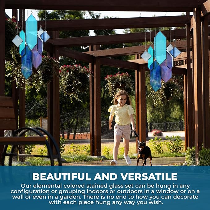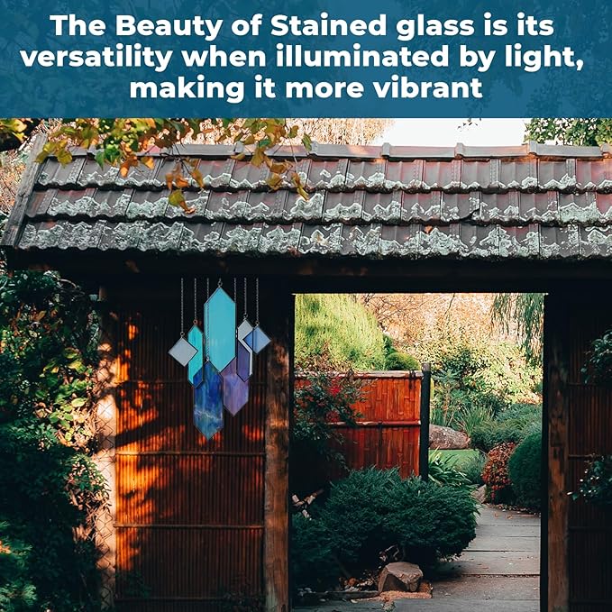 - 💯 Genuine Stained Glass Suncatcher: Crafted from real stained glass in a captivating Azure Blue design, this translucent window hanging is ideal for brightening up any space. Great for window decor, suncatchers, and glass art pieces for your home.
