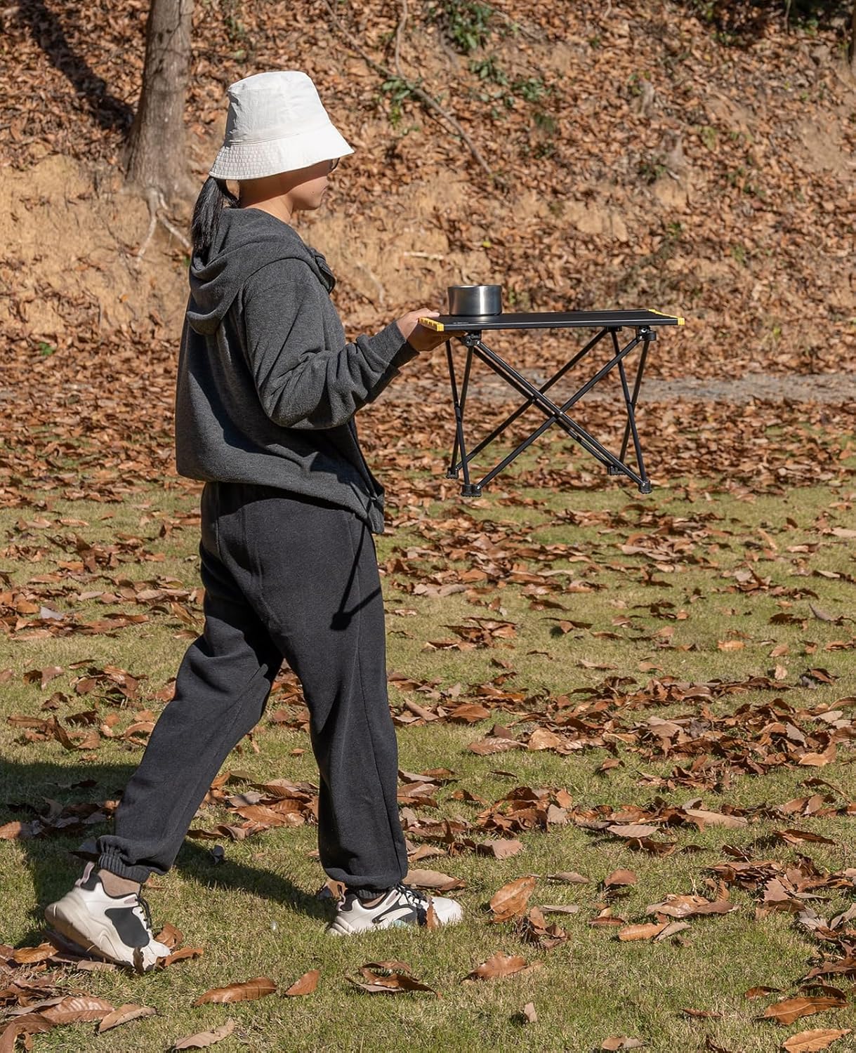 - Compact, packed size 22.8 × 5.9 × 2.76 inches; carry bag included, easy to carry everywhere; Unlike normal cloth tables, this table has flat surface; Surface area 22 × 15.94 inches; Height 14.96 inches (Please confirm the table size before ordering to avoid returns). Heat resistant, can put your stove on.