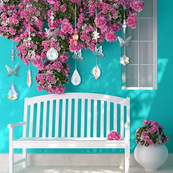 - DECORATE INDOOR AND OUTDOOR SPACES: You can use these Colorful Crystal Chandelier both indoors and outdoors. to hang them on your curtains, chandeliers, windows, walls,plants,or car.