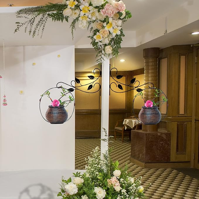 4 Leaves Style Metal Hanging Plant Brackets 12 inches x 9 inches, Pack of 2, Wall Mount Plant Hangers, Planter Hooks for Flower Baskets, Bird Feeders in Corridor/Patio/Porch/Garden