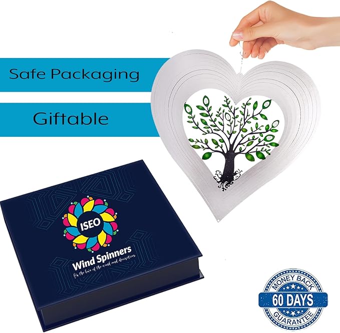 - UNIQUE DESIGN - Our Hearted Tree of life wind spinner has an elegant, stylish, and unique design to make your garden stand out. They create an incredible 3D illusion when the wind blows against them to create a magical sight that will keep you glued outdoors in your garden or porch.
