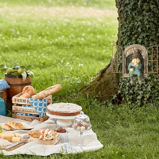 - Vivid figurines: there are 2 styles tree face gnomes statue, one is the elf out the door tree smiling with 5.7 x 5.9 x 1.5 inches, the other one is the elf sitting on the window tittering with 7 x 5.9 x 1.9 inches, cute and vivid statues will add much fun to your garden decor