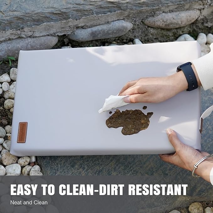 - Durable Material: Made of high density non-recycled foam which can last for many years. This kneeling mat will not compress over time and has non-slip bottom, will not impacts from stones and rough ground when used outdoors.