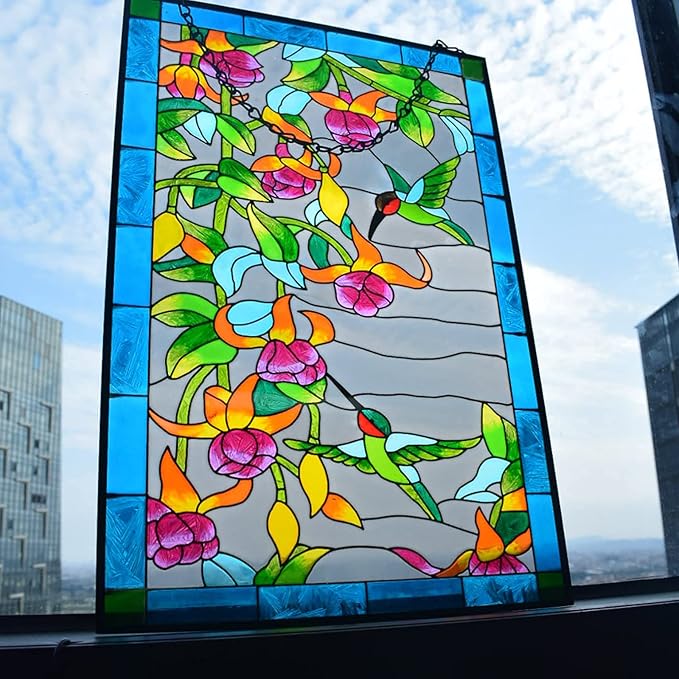 - Widely Uses: Exquisite hummingbird stained glass panels can be an unforgettable gift for any person! The hummingbird stained glass window hangings and wall hanging could be the perfect decor for your home and garden. It's a good accessory for your interior