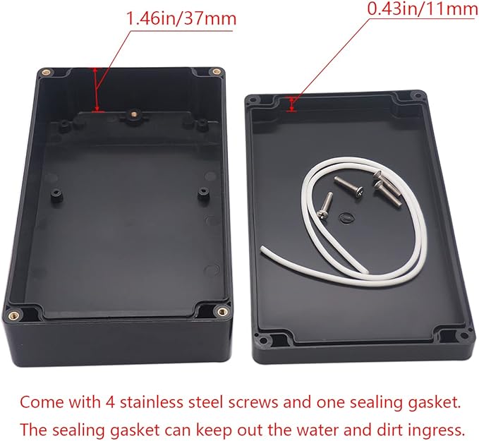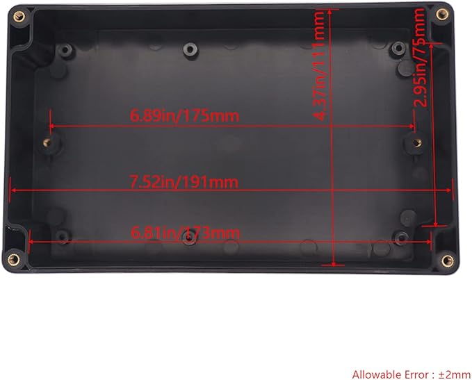 - 【Size】- Outer size of the project box: 7.87"x 4.72"x2.20"(200 x 120 x56 mm); Inner size of the project box:7.52" x4.37" x 1.89" (191 x111 x48mm)