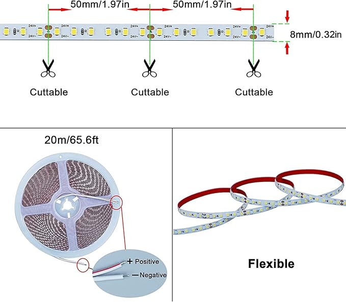 - 【Cuttable】 DIY various shapes; Good flexibility, it can bend and fold at will. The LED strip lights can be cut every 6 LEDs along the cutting marks, very suitable for easy DIY.