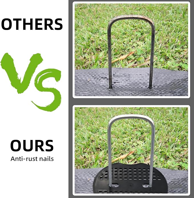 - 【Useful and Well Made Garden Stakes】The U shape design of the garden stakes helps to add tension to the soil, the ends of the galvanized steel stakes are cut sharply that can be pushed into the ground with your hand and easily penetrate fabric without bending. Helped with pushing into hard clay soil even for sandy soil.