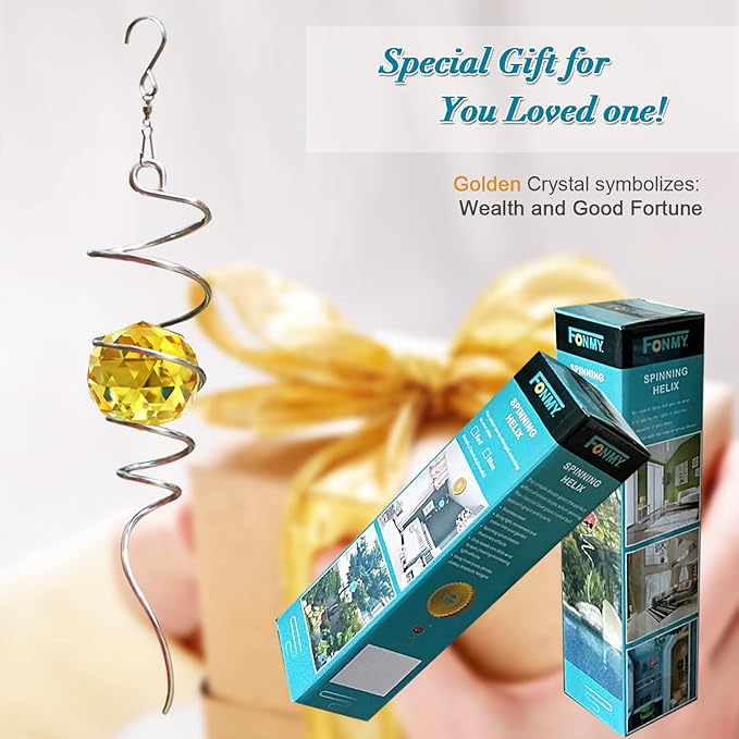 - 【PREMIUM CRYSTAL SUNCATCHER】The spiral with crystal is a special sun catcher rainbow maker, it’s Super Sparkly under sunshine. You can also add a motor(not include) to let the spiral to spin ,while spiral tail rotating (it can’t spin by itself.), the crystal ball seems to move up and down like floating and dancing in air while spiral tail rotating, presents the magical visual illusion.