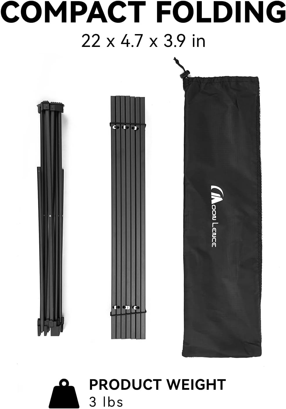 - Easy Care: Includes tabletop, frame, and storage bag. Clean with mild detergent and a damp cloth. Avoid strong acids and corrosive cleaners. Store to prevent scratches and avoid prolonged sunlight or dampness. MOON LENCE support is available 24/7