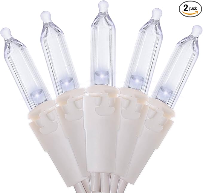 - 【Mini LED Christmas Lights Specification】: 2 Sets - white wire christmas string lights includes 100 count cool white led lights, total length 35.3ft, lights length 33ft and each led is 4 inches apart, 24 inches lead wire, 4 inches end connector (Extra 2 x replacement bulbs and 2 x fuse included)