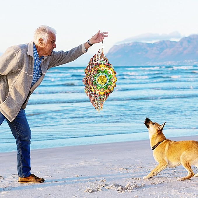 - 【<b>Vivid reflective color<b>】wind spinners are individually hand painted by epoxy protective coating with colorful sparkle powder inside to highly resist weather and rust. -Meanwhile,the reflective colorful glitter material gives off a sparkling, captivating and magical 3D visual effect, its beautiful light reflecting and attractive view whatever in night or day, wherever room or garden.
