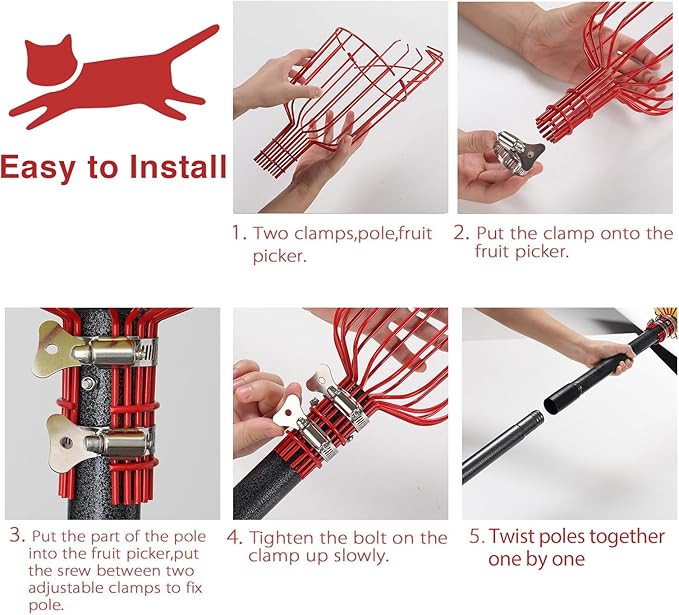 - ▶【Easy to Install】5 mins to assemble this fig picker by screwing all parts together with no extra tools required. Great Timesaver for fruit tree picker.