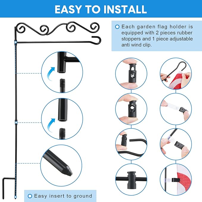 - Widely Applicable: the black garden flag holder is an elegant and distinctive flag display holder, suitable for displaying your favorite garden flags, such as American flag, Christmas garden flag, Halloween flag, or other seasonal garden flag, suitable for front door or backyard garden