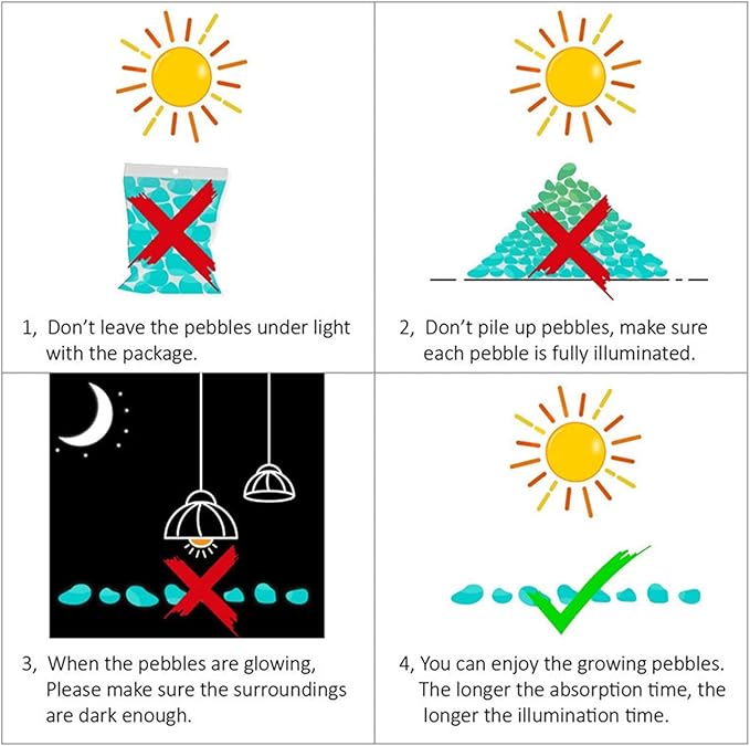 - 💝【Luminous Tips】After receiving the package, please lay the stones flat under the sun, or illuminate them with a bright light source for more than 3 hours during the day, making sure not to pile them up. Luminous stones can be reused.