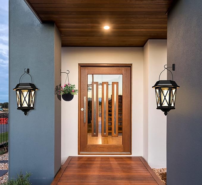 Modern, solar-powered outdoor wall lights with motion sensor, dual-power design, and warm 3000K illumination—perfect for fences, garages, patios, and garden walls.