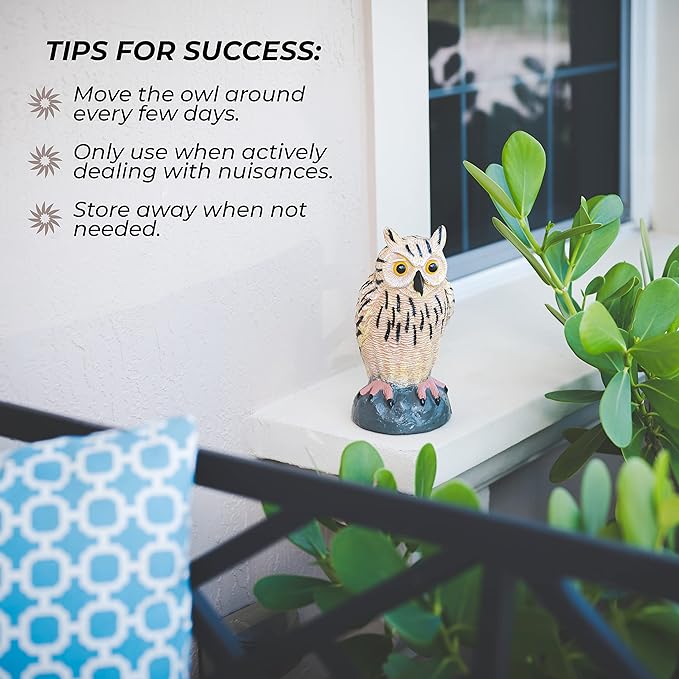 - MULTI USE - Place it in your garden or farmland as an owl statue or to protect your crops of fruits, vegetables, & plants. Widely used in orchards, gardens, barns, front lawns & trees. Keep your windows, boats or cars clean from bird droppings