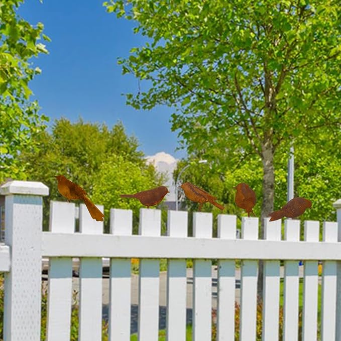 - Rusty Metal Birds: There are 5 metal birds. Handmade in steel from an original design and hand-rusted.