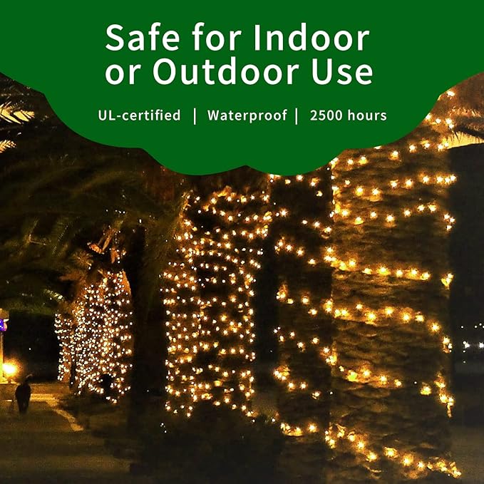 - 【Ultra-Bright Christmas Mini Lights】:The 100L Christmas Light Set include ultra-bright Incandescent bulbs which are much more bright than normal ones(+50% brightness).It is a great way to add a little sparkle to your display.