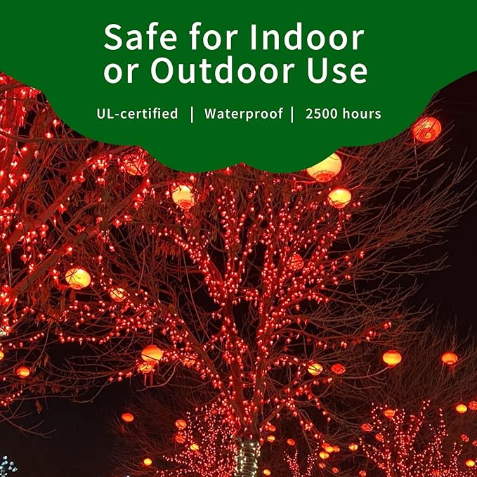 - 【Ultra-Bright Christmas Mini Lights】:The 300L Christmas Light Set include ultra-bright Incandescent bulbs which are much more bright than normal ones(+50% brightness).It is a great way to add a little sparkle to your display.