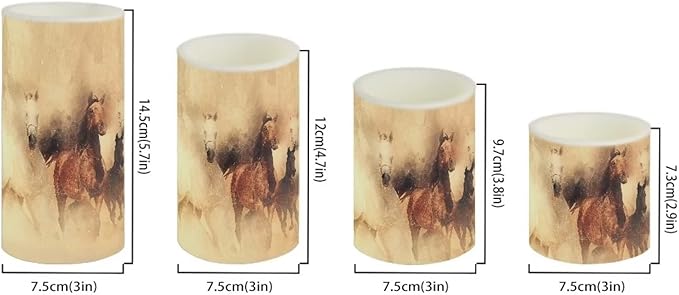Vintage Running Horse Outdoor Waterproof LED Candles Battery Operated Set of 4 with Timer Remote Colour Changing Pillar Candles for Fall Halloween Decor