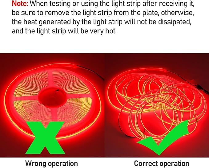 - 【COB LED STRIP】480LEDs/M, 2400LEDs/5M, COB light strips have more dense LED chips, Which make the emitting units nprecedentedly close to each other, and create super even lighting performance. At the same time, it brings higher luminous efficiency.
