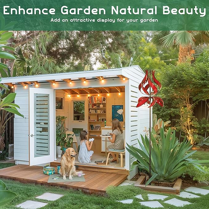 - ENHANCE GARDEN NATURAL BEAUTY: Add an attractive outdoor display by lining kinetic metal wind spinners in your garden.