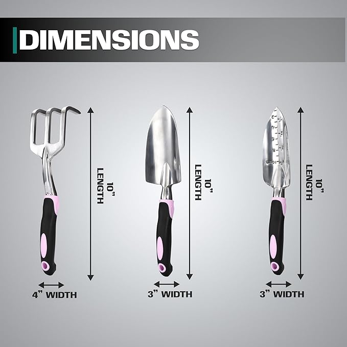 - VERSATILE GARDEN TOOLS: Our set includes a garden spade and hand shovel to help you handle all your gardening tasks. Also, it features a transplanter and hand rake for pruning, digging, and weed control making it flexible enough for all gardening activities
