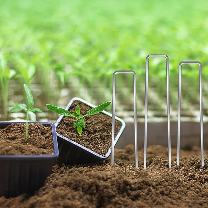 - Package contains: 50pcs 6 inches galvanized rust-proof u-shaped garden stakes in a Firm and sturdy box.