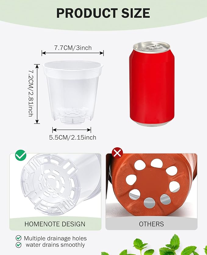 • 🌻【Abundant Drainage Holes】The bottom of these plastic plant pot comes with unique design drainage holes to keep the soil drained and ventilated, so the transparent planting pots allowing excess water to flow out and preventing root rot. The bottom of the plastic pots for plants are made raised, and the enhanced ventilation can improve the survival rate of the seeds.