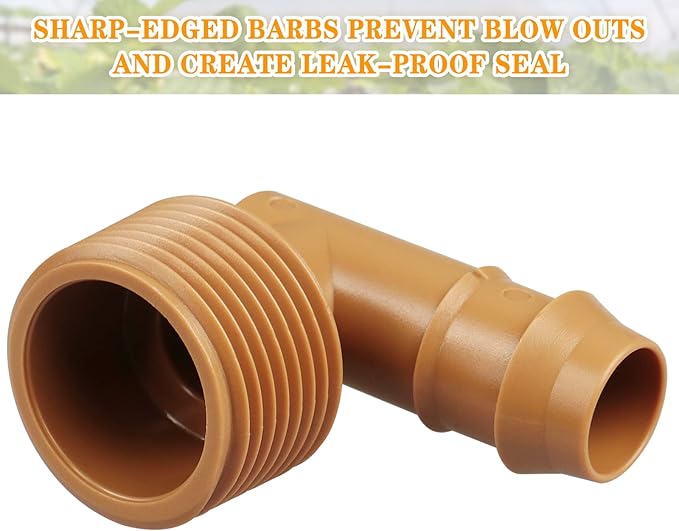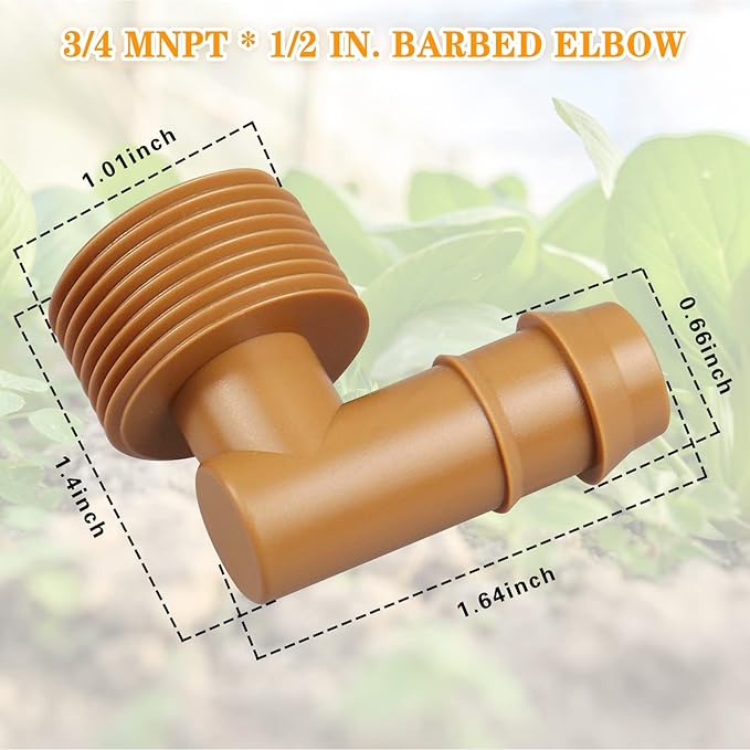 - WIDELY APPLICATION: This 3/4 in. x 1/2 in. barbed elbow can be widely used in plant drip irrigation system, patio misting system and plant watering system.