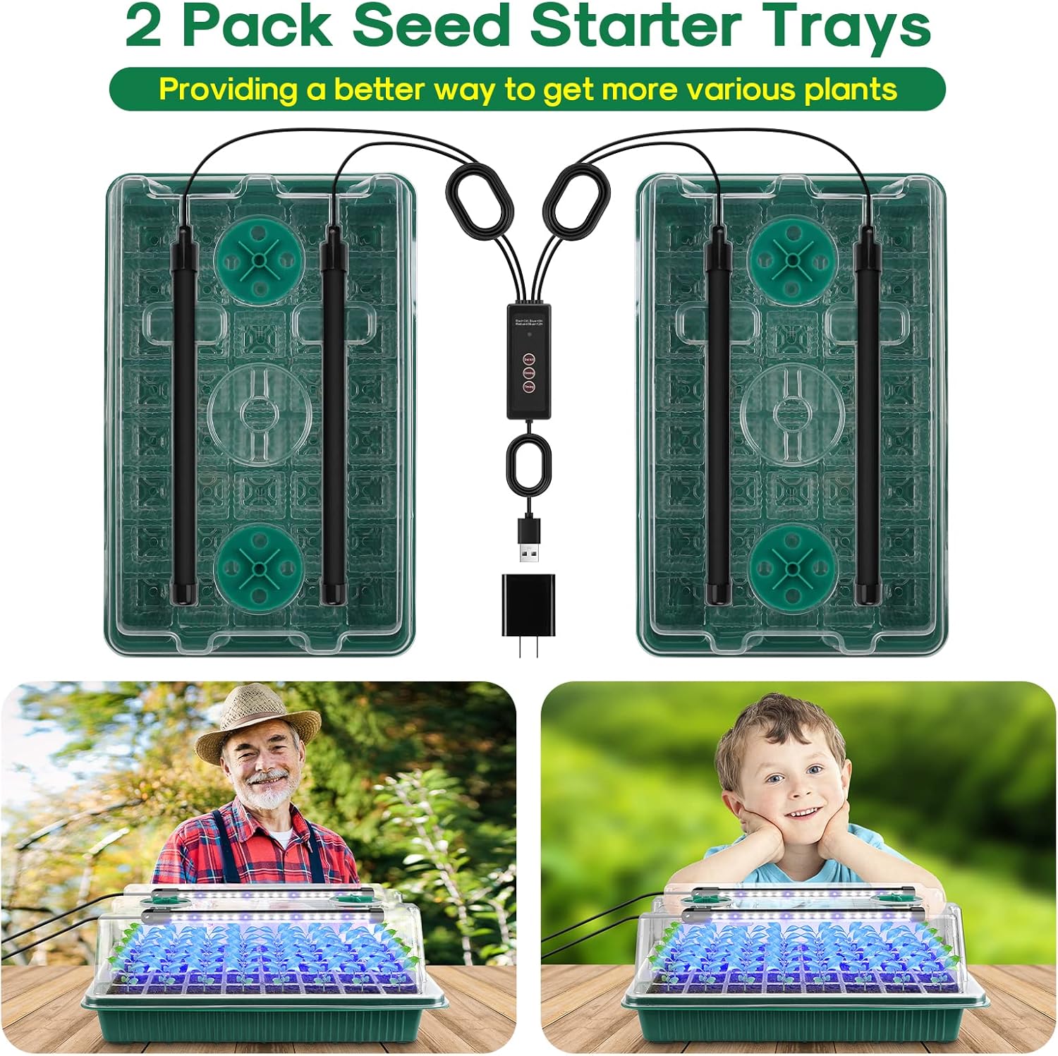 - 【360°Spectrum Seed Starter Tray With Grow Light】 Larger grow light cover spectrum for better seedling grow, the seed started kits have 4 full spectrum strip seed grow lights insert on the Dome of the garden plant starter kit. Now you can adjust and timed the light as you need! Withe& blue Light will help seedling growing faster and better. You can use this product by USB port or just plug-in,3 lighting modes & 3 timing functions (3H/6H/12H) & 5 brightness modes, the best tool for your garden