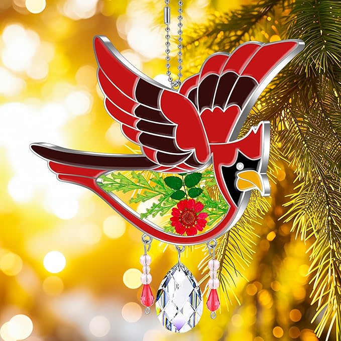 - ✅The Holiday Decor Glass windchimes Wide Applications:The holiday decor real flower cardinal crystal mom Sun catcher, suitable for indoor and outdoor decorations, such as window, wall, door, yard, christams tree, garden and patio. perfect for adding a touch of mother`s day, birthdays party, thanksgiving, valetine`s day, and christmas to your home or garden decor.
